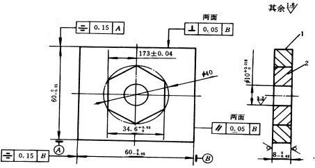 1.件2按件1配作,配合互換間隙不大于0.08mm。